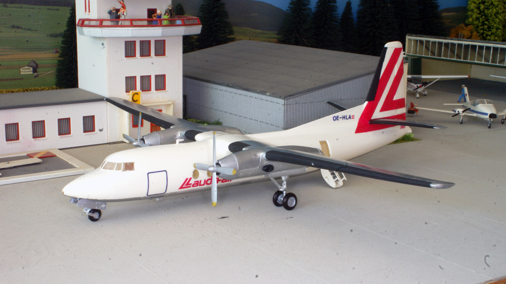 Revell 1/94 Fokker F-27 met eigen decals. Lauda Air.