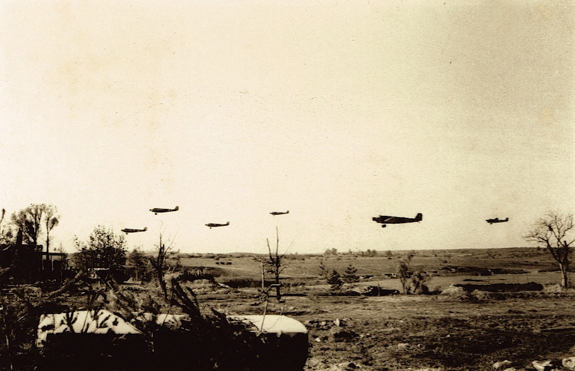 Junkers Ju 52. Bevoorradingsvlucht ergens in Rusland. Veel lager kon niet.