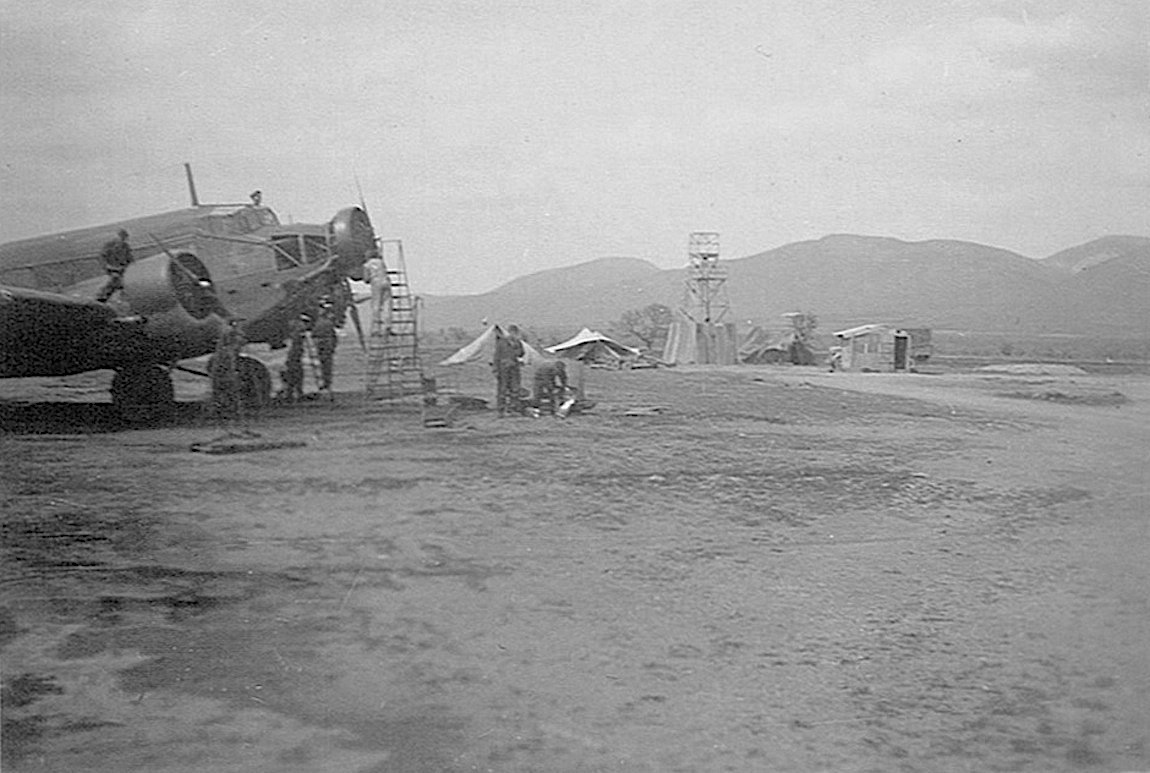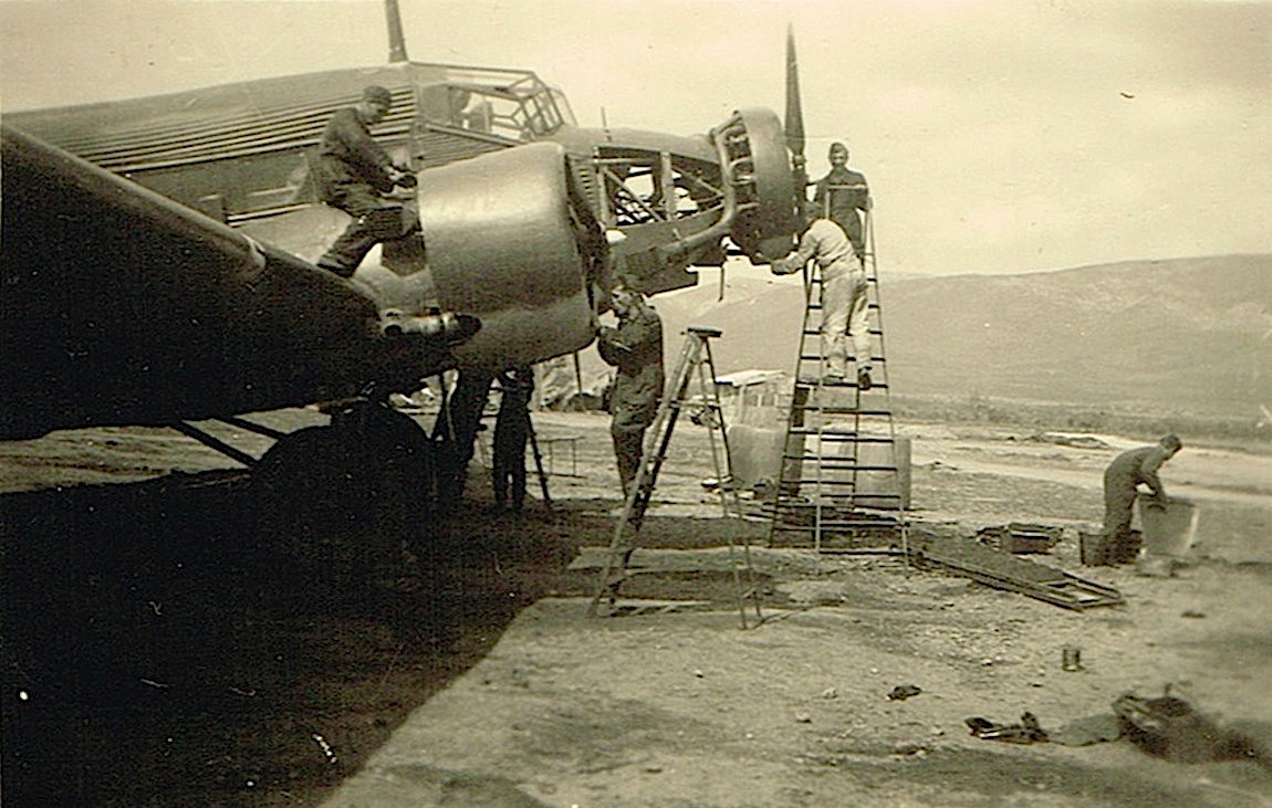 Onderhoud aan Junkers Ju 52 op een wel heel primitieve basis. Volgens mij is het hetzelfde veld en gebeurtenis als op foto 181.