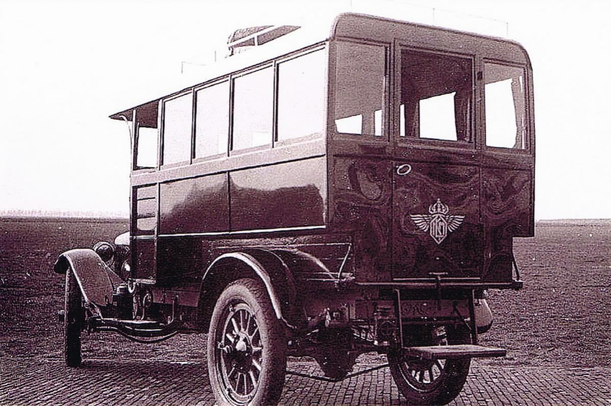 Aardig om te zien hoe de bus technisch in elkaar zit: flinke bladveren waaraan de assen zijn opgehangen. Nog heel erg 'hippomotive'.