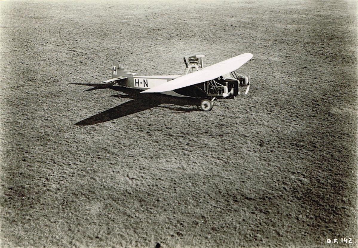 Ik dacht dat er iets was met de eenmotorige en dat hij in Amerika zijnde op het idee kwam om er een driemotorig toestel van te maken.
