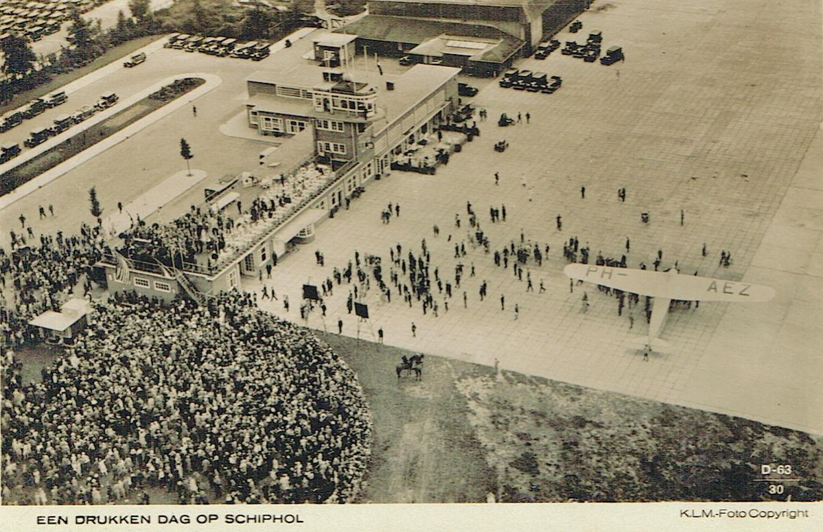 HET EERSTE VLIEGTUIG OP SCHIPHOL TERUG.