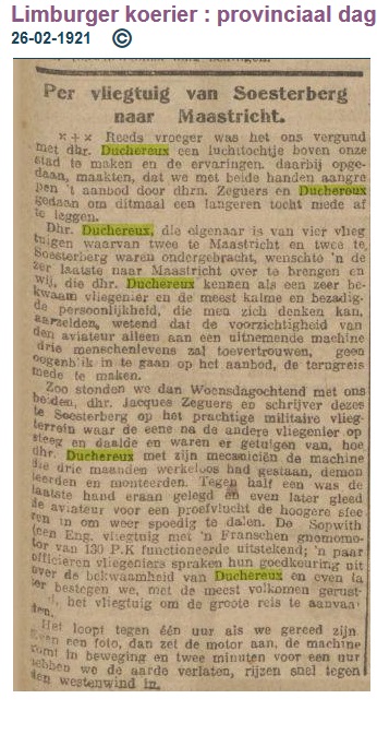 Op blz 13 van deze uitgave van de Heemkundige kring, staat dat Duchereux op 9 september de Mierlose Molenheide bezoekt met (vermoedelijk) een Sopwith B2. (Interessante uitgave!)