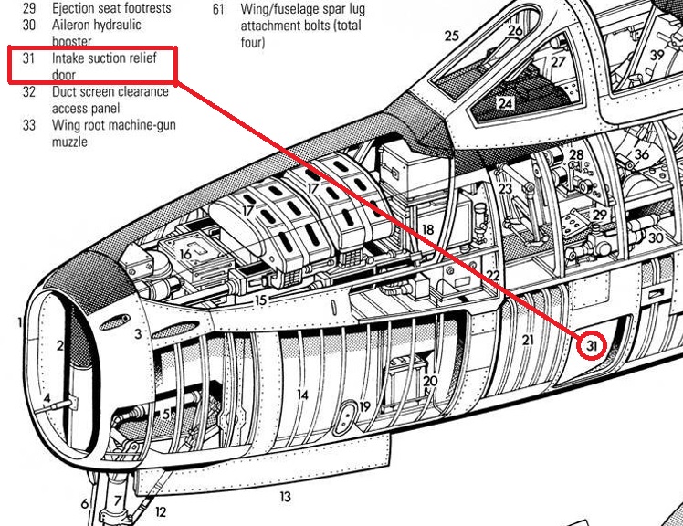 Wat zou de luchtinlaat zijn vlak voor de vleugelvoorrand in foto #560?