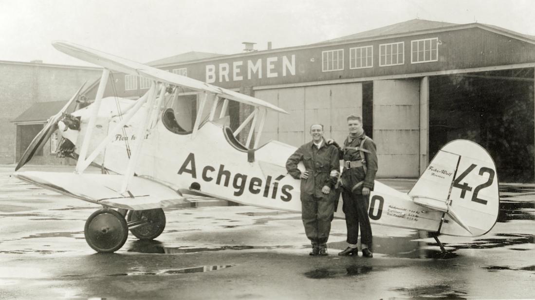Gerd Achgelis, rechts op de foto (16 juli 1908 te Brake–18 mei 1991 te Hude) was een bekende Duitse piloot (ook aerobatic), testpiloot en pionier in de ontwikkeling van helicopters, dat laatste ondermeer bij de firma Focke-Achgelis waarvan hij mede-oprichter was.