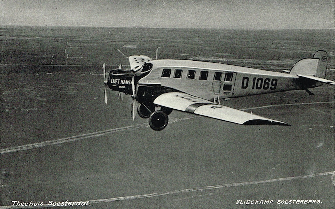 Wat het "Theehuis Soesterdal" bewogen heeft deze kaart uit te brengen? Een Nederlands theehuis met een Duits civiel toestel en dat gekoppeld aan een militair vliegveld "Vliegkamp Soesterberg". Curieus!!