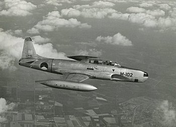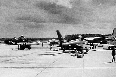 Een USAF Streak, boven Europa, 's avonds, na een dag met heet weer.