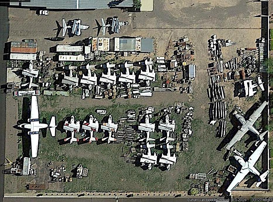 Het is een verzameling Trackers, vleugeltjes gevouwen, en een paar niet meer luchtwaardige Albatrossen.