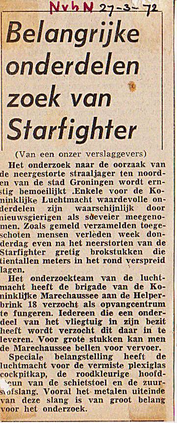 Benoorden de stad Groningen was een Starfighter uit de lucht komen vallen.