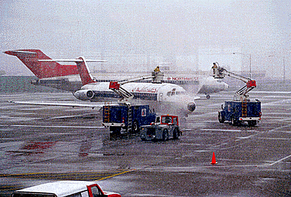 Op speciaal ingerichte 'deicing pads' kon de vloeistof worden vergaard en hergebruikt, was het idee.