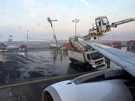 We zien hier niet het hele vliegtuig, en mogen daarom geen oordeel vellen over te weinig deicing trucks.