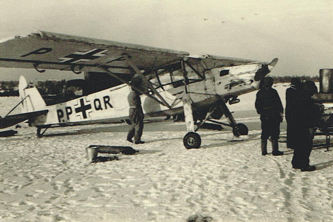 'PP+QR'. Fieseler Fi 156 Storch (WNr. 5457) met wintercamo.