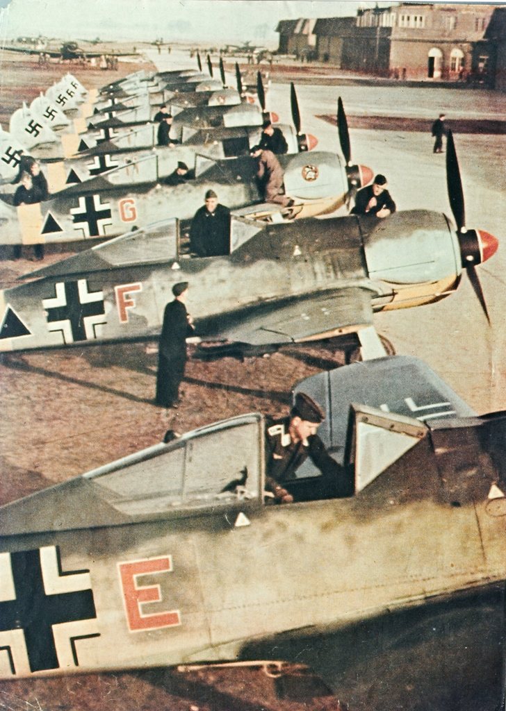 Volgens mij zijn dit een serie FW-190's vers uit de fabriek. Als iemand het beter weet houd ik me aanbevolen voor commentaar.