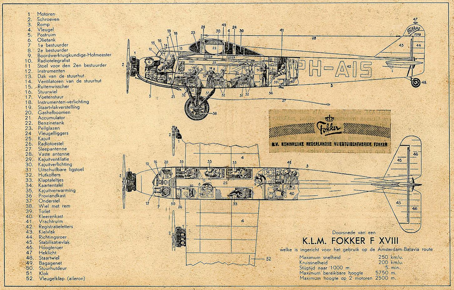 Foto 387. Doorsnede Fokker F.XVIII Amsterdam-Batavia route. Zo groot mogelijk gehouden.