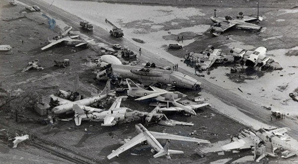 Tijdens verblijf in het Bradley Air Museum te Windsor Locks in 1979 vernield door tornado, zie foto's hieronder.