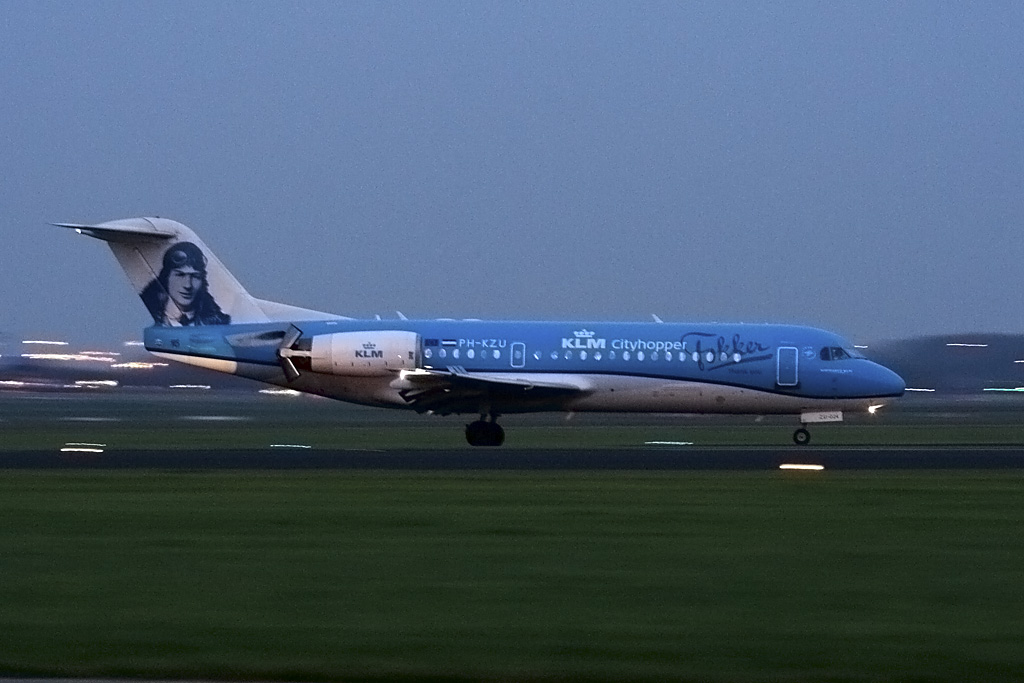 In 2017 vloog er één Fokker-70 in speciale Anthony Fokker kleuren rond, tot het afscheid van de Fokker-70 bij de KLC in december dat jaar. Dat was natuurlijk eentje om voor op jacht te gaan, maar veel geluk heb ik hier niet mee gehad. Ik heb 'm 2x gezien. De eerste keer in het donker, omdat hij veel te laat uit Londen vertrok en de 2e keer pakte het ding natuurlijk de verkeerde baan.