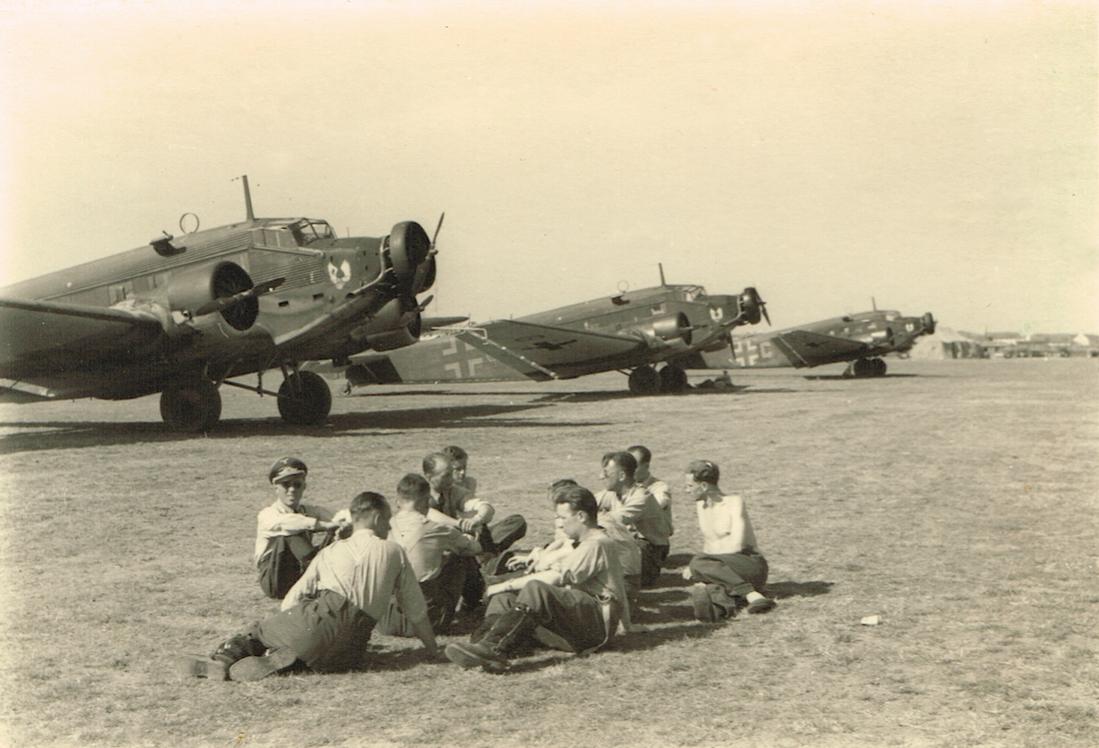 3x Junkers Ju 52. Tekst achterzijde: Kreta of Bulgarije, mei 1941. KGrzbV. 105 (Kampfgruppe zur besonderen Verwendung 105).