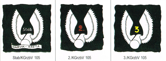 Het embleem op de toestellen (links) wijkt iets af van gepubliceerde emblemen van KGrzbV. 105.