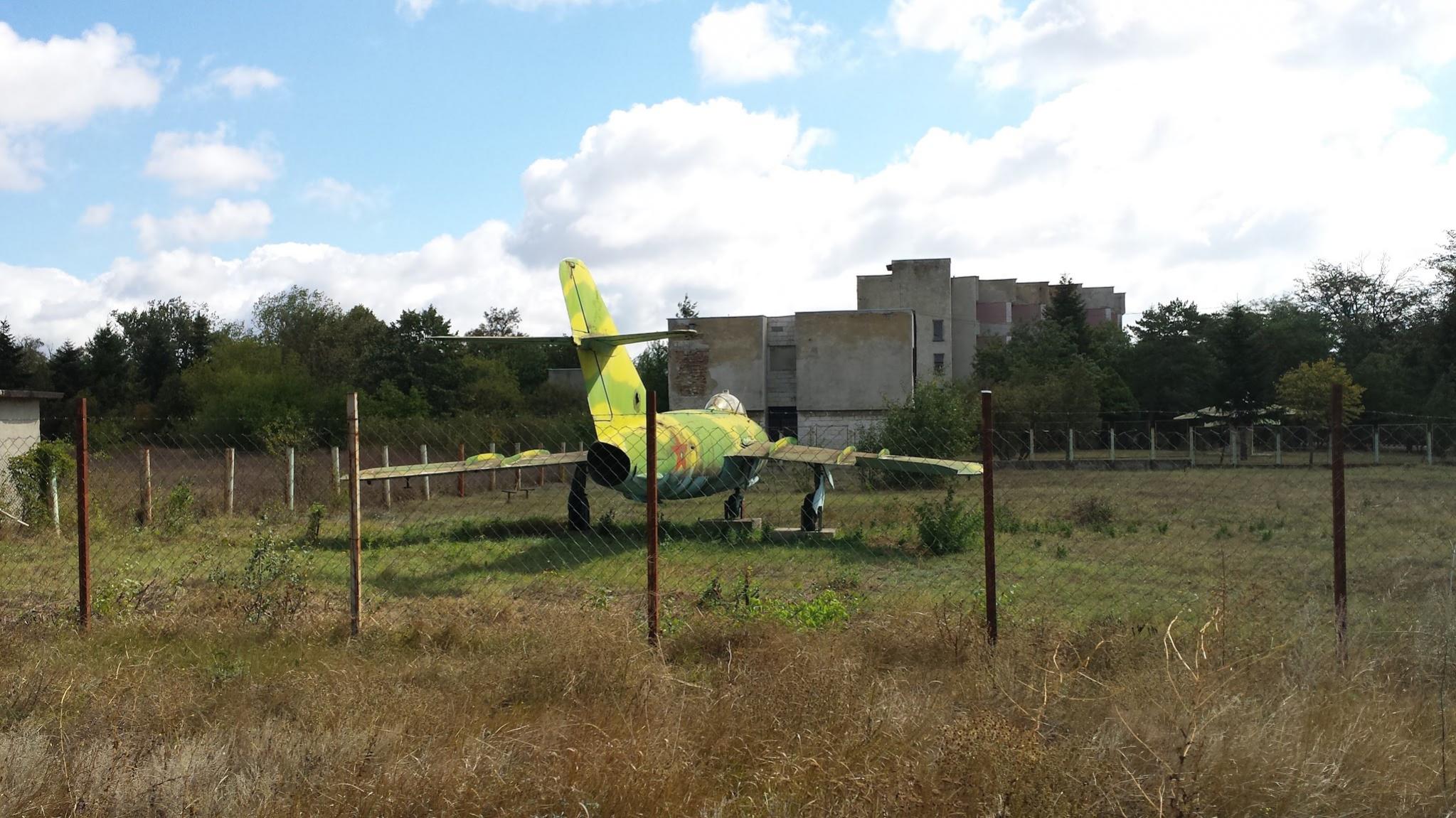Een Mig-21 bij de verlaten vliegbasis van Uzundzhovo.