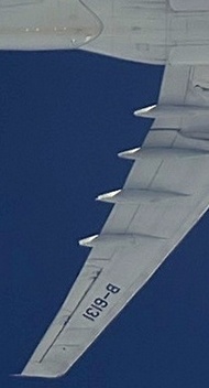 Mooie plek onder de diepe platte onderbuik waar vleugel en romp met de airconditioning packs samen komen.