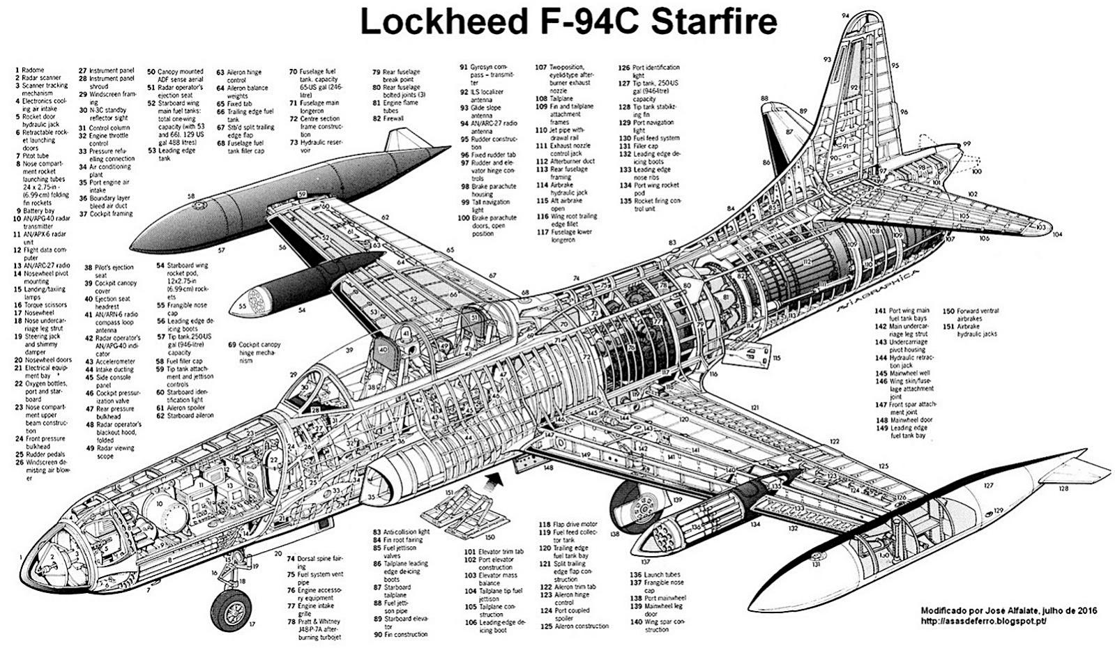 Een voorbeeld van een open flap bij een T-33A, die dezelfde vleugel als de F-94A/B heeft. Overigens de F-94C heeft een andere vleugel dan de F-94A/B en T-33.