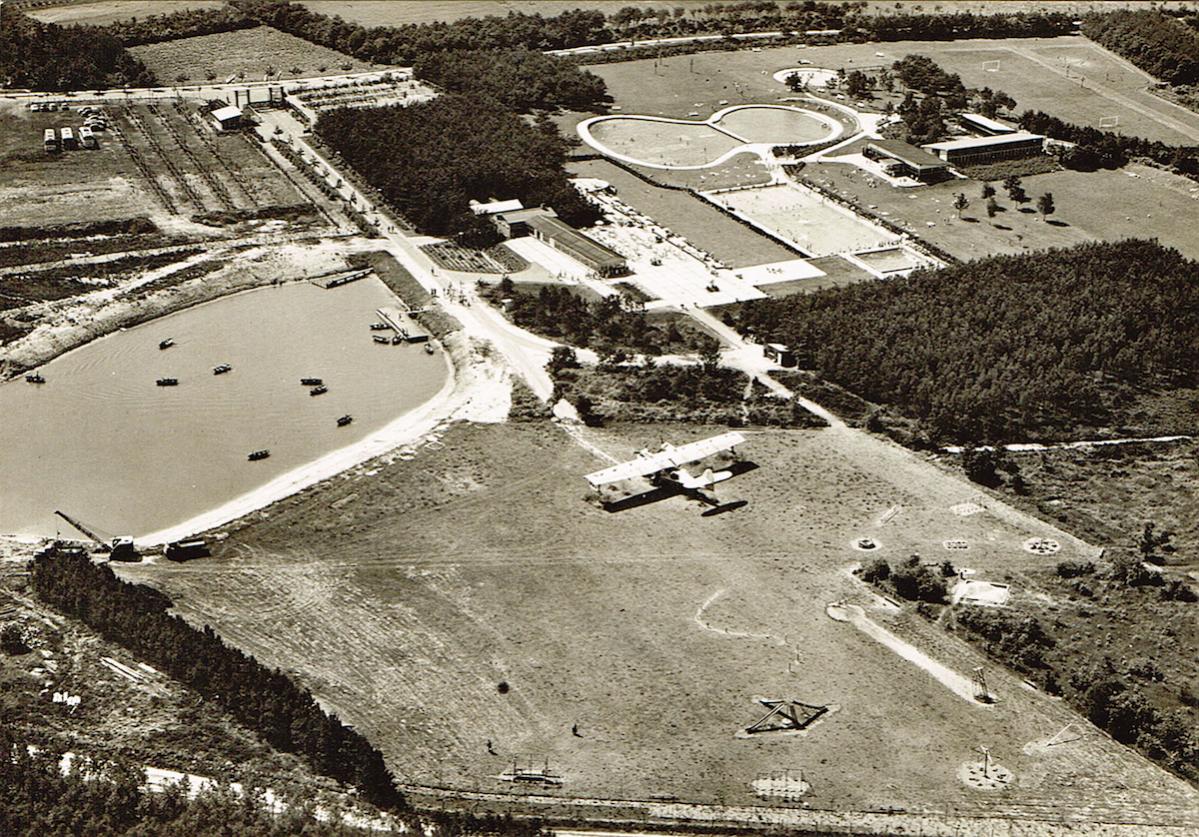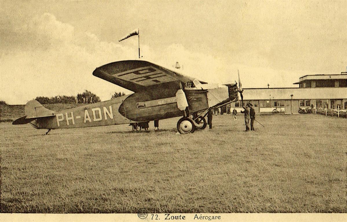 PH-ADN (eerder H-NADN. Verkocht als G-AEHE). Fokker F.VIIa te Knokke/Zoute Vliegveld/Aérogare.