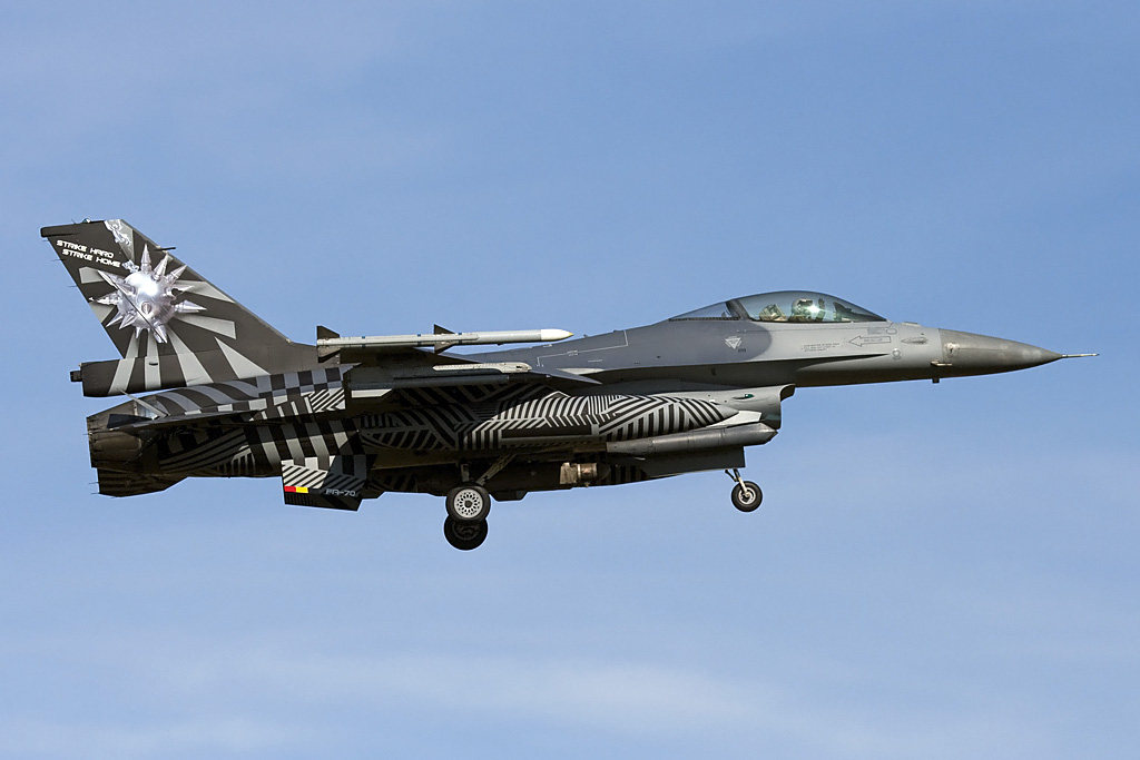 Op dezelfde dag als bovenstaande plaatje van de Eagle, maakte ik deze van de J-063, onze Nederlandse MiG-Killer. Deze F-16 schoot een MiG-29 neer boven Servië/Bosnië tijdens operatie Allied Force: