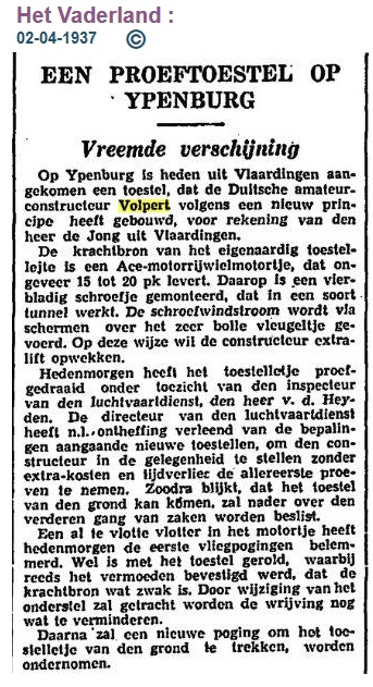 Bij het lezen van de vragenrubriek van Herman Dekker kwam ik deze vliegtuigbouwer tegen: Ludger Volpert (uit Hamburg)