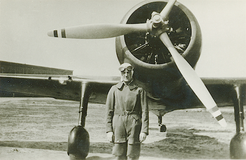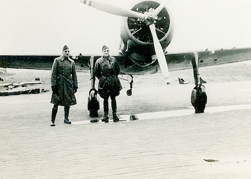 Vlieger Hans de Bruijn (rechts) voor een D.XXI te Soesterberg.