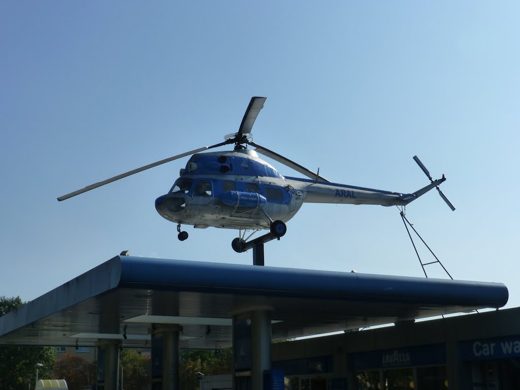 Een Mi 2 op het dak van het zelfde tankstation in Leverkusen.