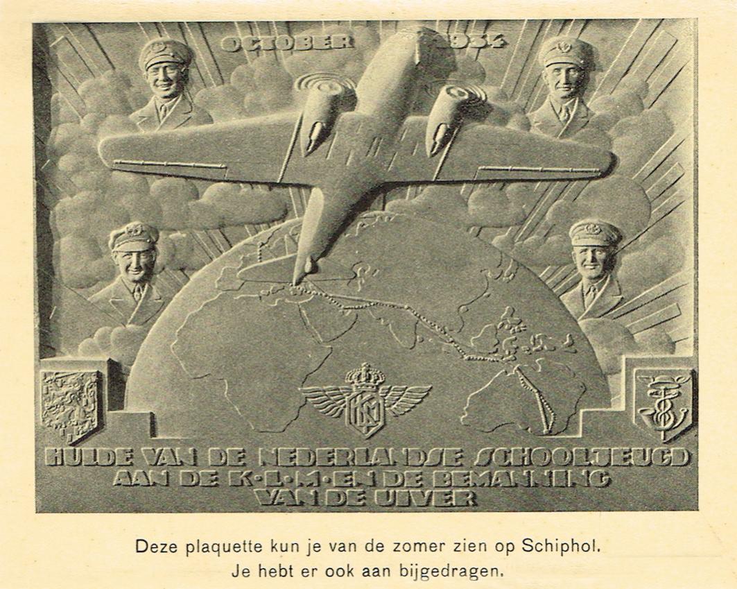 Foto van plaquette bestemd voor plaatsing op Schiphol. Gaat wel ver om de jeugd voor 'verering' te laten betalen.