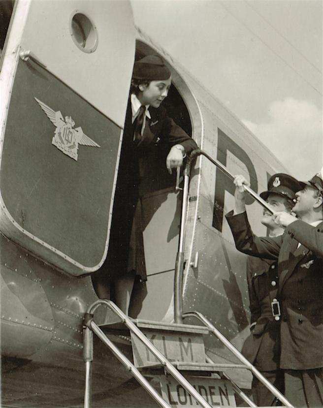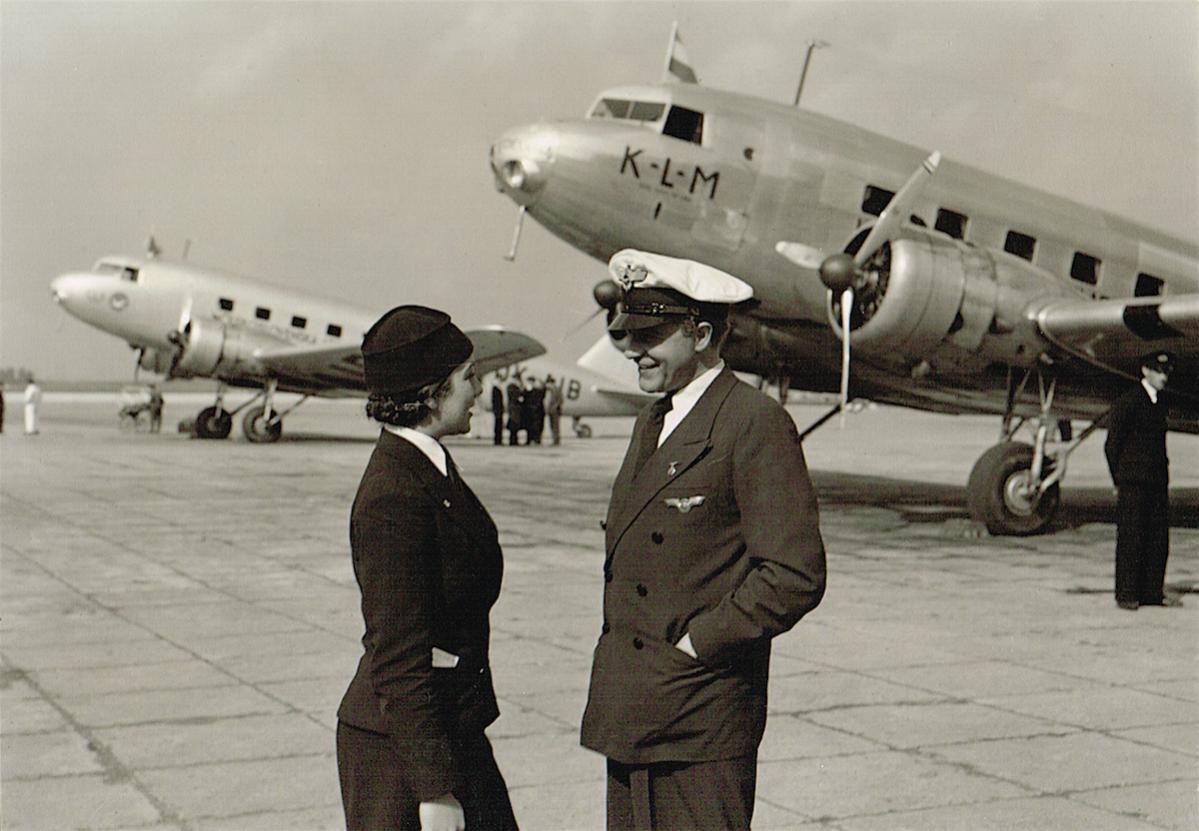 Op de foto’s zijn hoofd stewardess Ina van Leeuwen-Boomkamp en Willy Fritsch te zien alsmede Douglas DC-2.