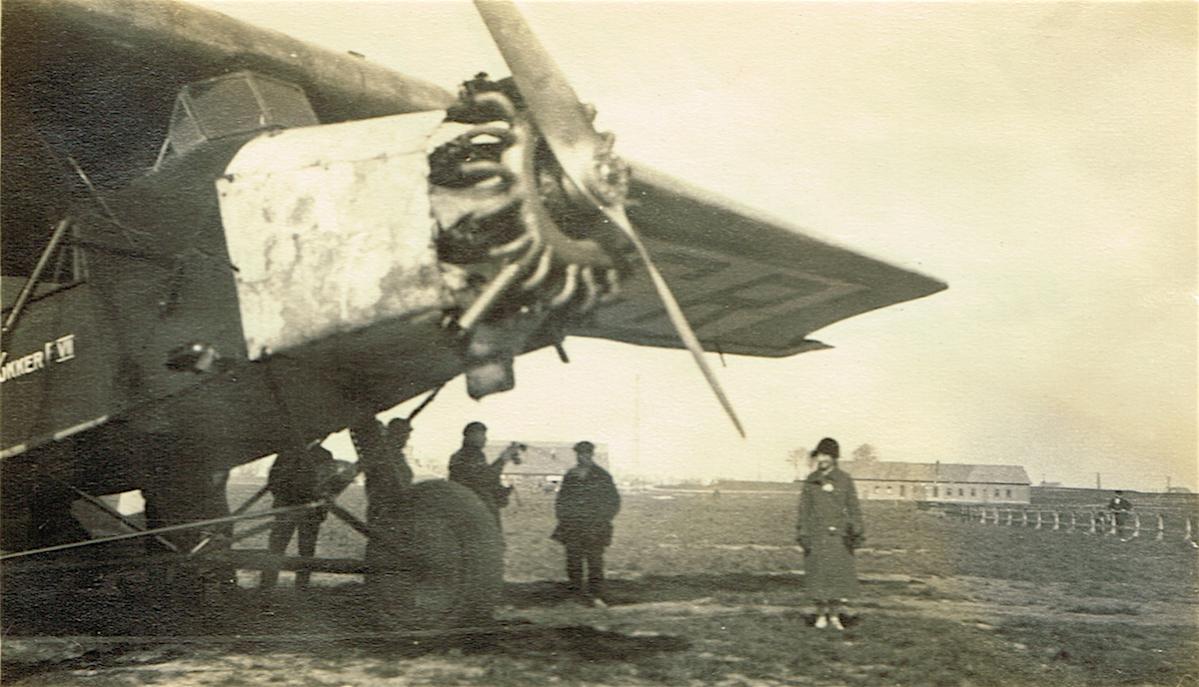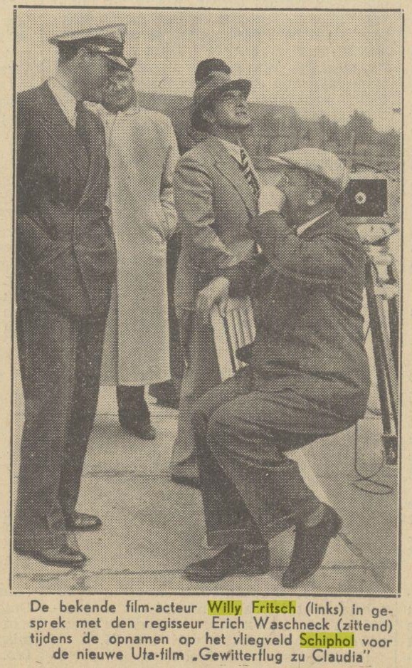 De foto's zijn in september 1937 gemaakt, toen werden er op Schiphol opnames voor de Ufa-film "Gewitterflug zu Claudia" gemaakt waarin Willy Fritsch de rol van de gezagvoerder Hans Droste speelde.