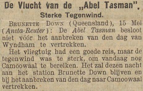Aircraft named 'Abel Tasman' for the first postal flight from Batavia to Sydney, Australia, 12/27 May 1931.
