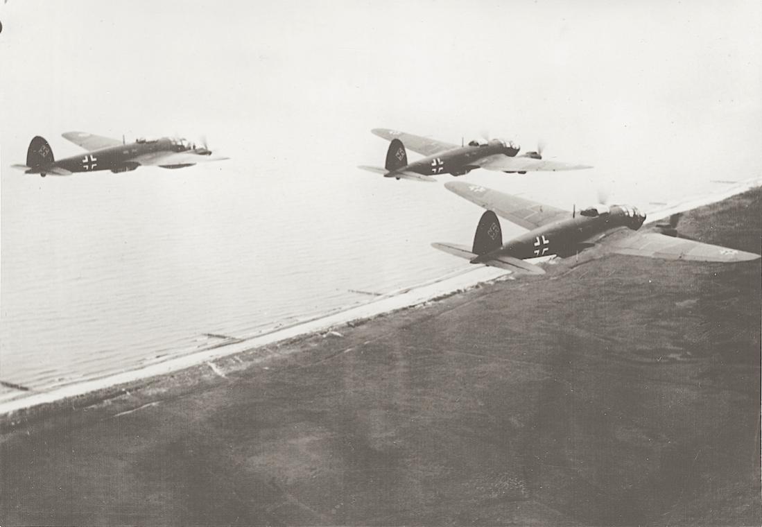 Heinkel He 59 overvliegt de Nederlandse kustlijn bij Scheveningen.