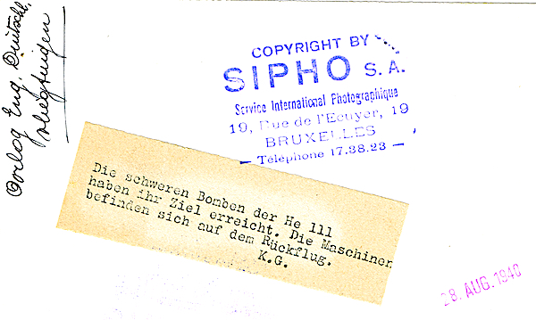 Foto 579 en 579a. Zie de stempel van SIPHO S.A. op de achterzijde van de foto, 28 aug. 1940.