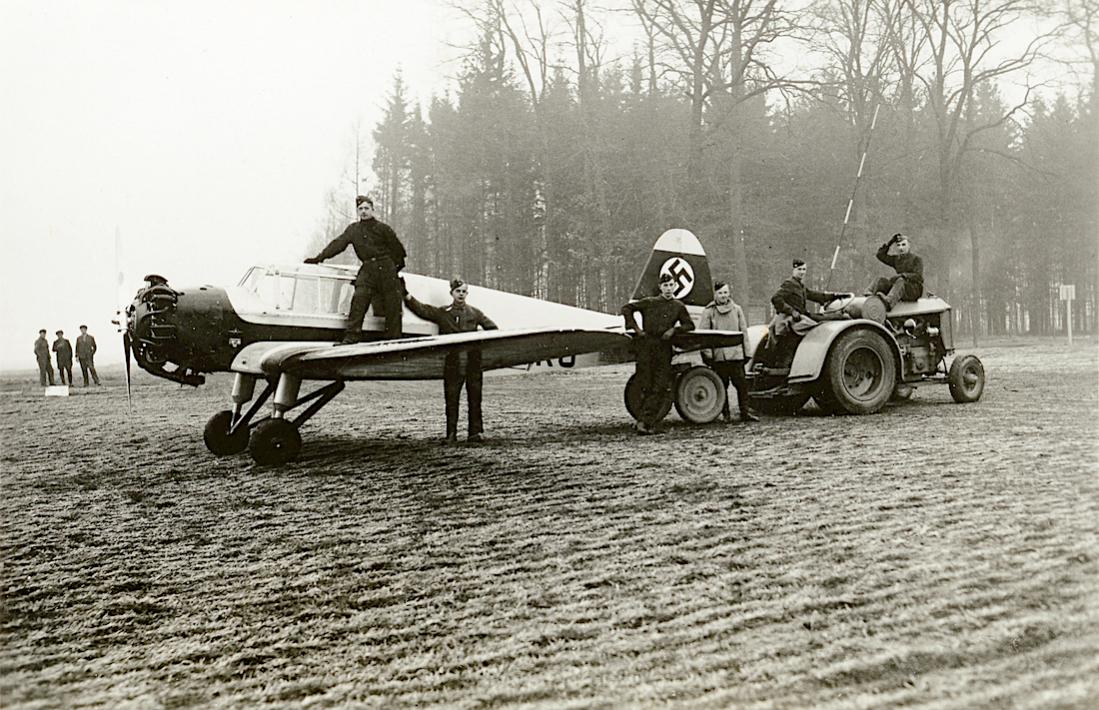 348. Voormalige Nederlandse Fokker G-1 op Ockenburg na de capitulatie, nog met de Nederlandse registratie maar al wel met Balkenkreuz en Swastika van de bende van Schicklgruber.