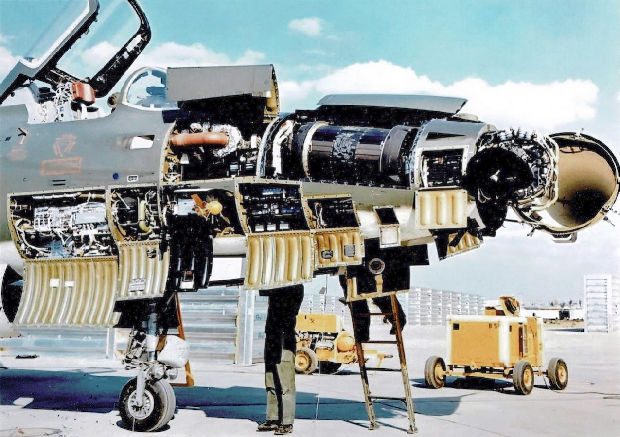 Axial-flow jet engines, however, were much more susceptible to icing damage. The inlet guide vanes were particularly vulnerable, but the cowling's leading edge, the main bearing supports, and accessory housing could also ice up. If pieces of ice reached the engine's internal components, the compressor blades could be damaged. To study this phenomenon, a Westinghouse 24C turbojet, seen in this photograph, was installed under the B‒24M's right wing.