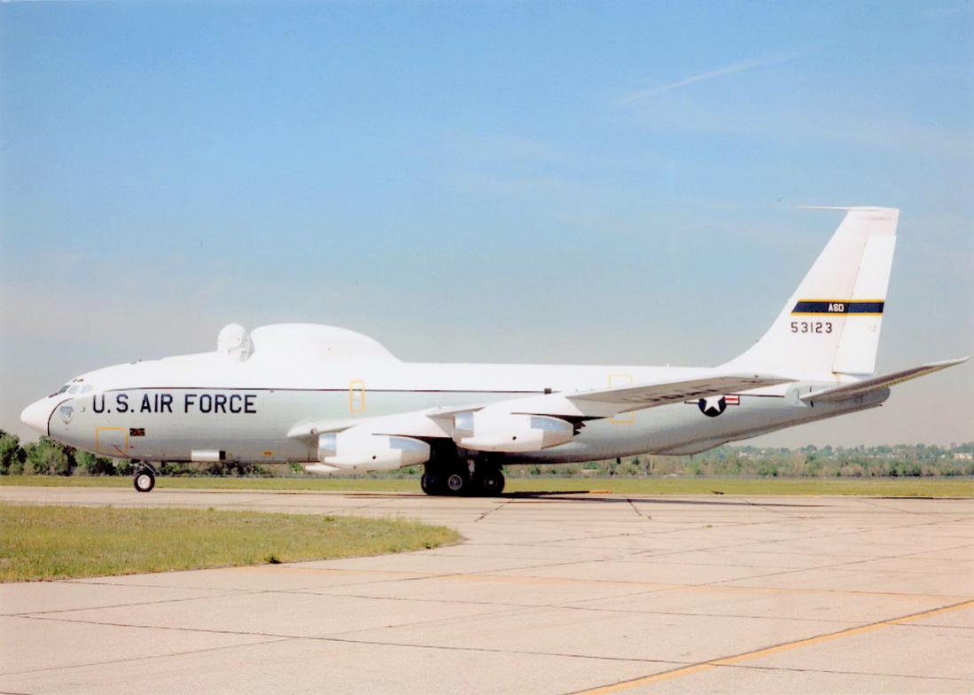 3123. 3/1/57: Rollout as KC-135A, but was delivered as a dedicated test bed with no refueling boom. // 4/5/57: First flight. // 5/18/57: TOS USAF and redesignated as JKC-135A. // 7/74: Began serving as the primary platform for testing the Airborne Optical Lightweight Tracking System (ALOTS). Flight tests for the system began in 1965. // 1977: Redesignated NKC-135 (zie foto) and converted to Airborne Laser Laboratory by General Dynamics. This plane was extensively modified by the Air Force weapons Laboratory at Kirtland Air Force Base, N.M., and used in an 11-year experiment to prove a high-energy laser could be operated in an aircraft and employed against airborne targets. During the experiment, the Airborne Laser Lab destroyed five AIM-9 Sidewinder air-to-air missiles and a Navy BQM-34A target drone. // 4950th Test Wing, Aeronautical Systems Division, Wright-Patterson, OH [noted Aug81] // 5/4/88: 4950th Test Wing, Wright-Patterson AFB, OH, landing at Wright Field for preservation at the Air Force Museum. // 5/20/88: Turned over to the Air Force Museum.