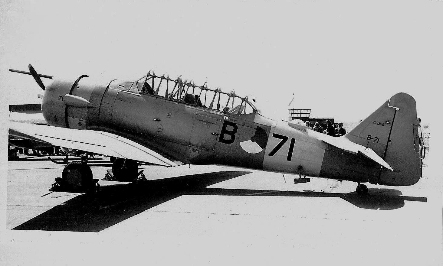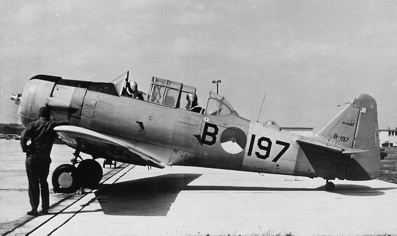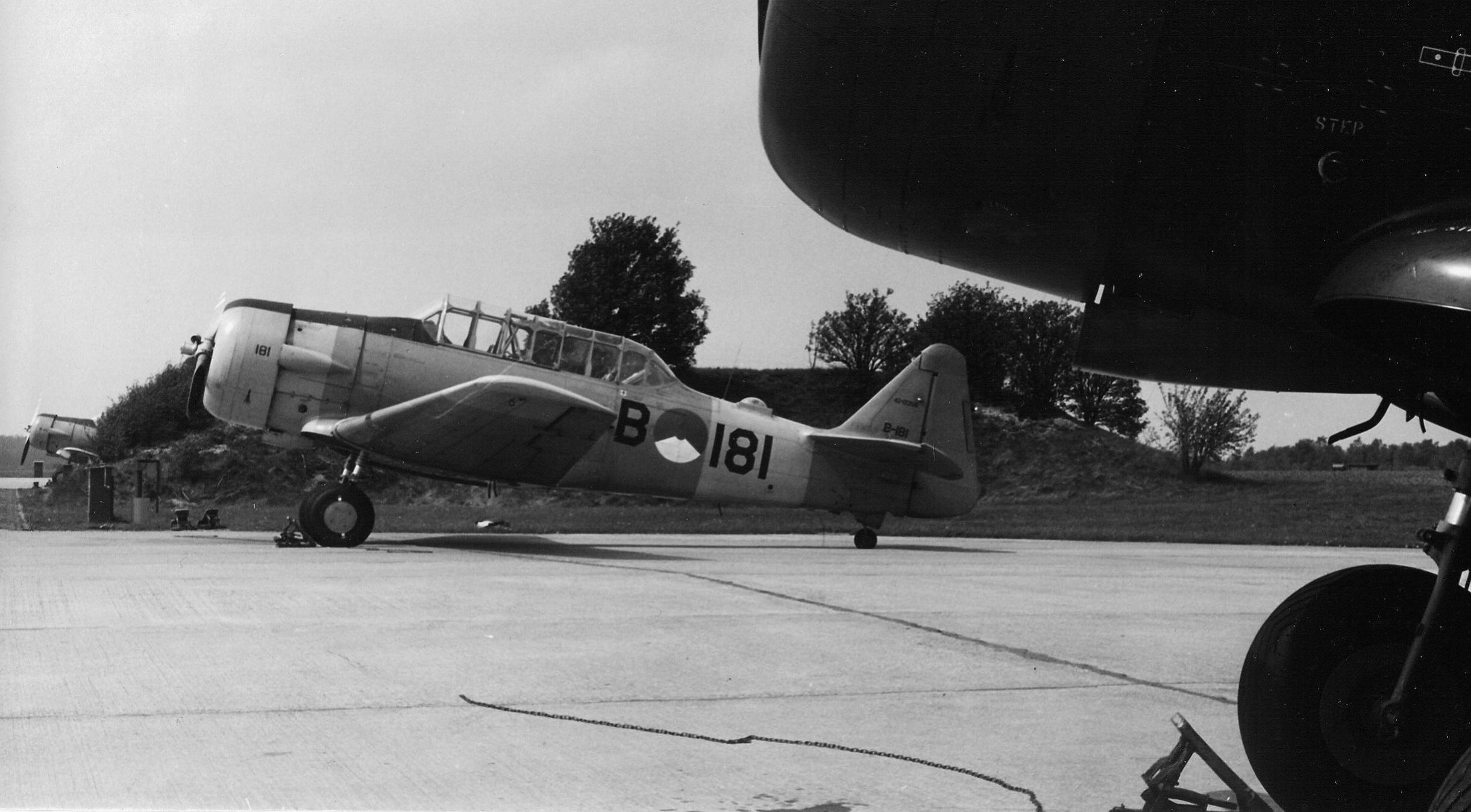 Volgens mij zijn dit Amerikaanse Harvards (korte uitlaat en afdekplaten op landingsgestel) en de Harvards van de Klu kwamen dacht ik allemaal uit Canada (Noorduyn, lange uitlaat en zonderde afdekplaten).