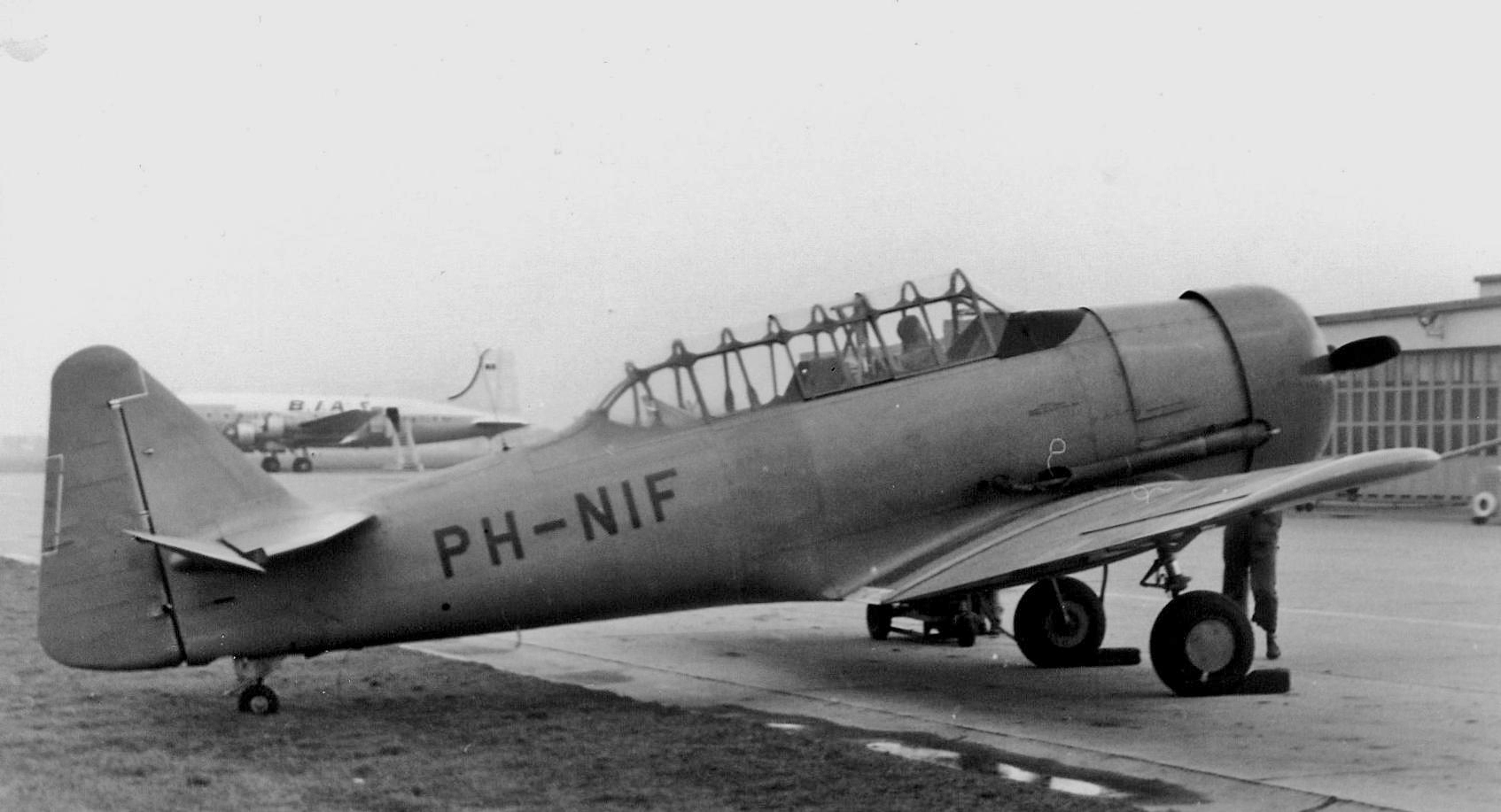 Het lijkt hier inderdaad om gloednieuwe AT-6A Texans van de Rijks Luchtvaart School te gaan, en de foto is wellicht op Gilze-Rijen genomen. De RLS kreeg later Harvards; hetzelfde type als in gebruik bij de KLu (LSK toen nog), MLD en in Indie. De RLS Texans, met registraties in (m.n) de PH-UBx reeks zijn te herkennen aan de korte uitlaat en schuine (ipv ronde) achterkant van de cockpitkap. De RLS Harvards hadden wat verschillen tov de militaire toestellen; ze hadden wat standaard "kenmerken" die ook op de eerder geleverde Texans zaten; spinner, wieldeuren, andere boordverlichting e.d.