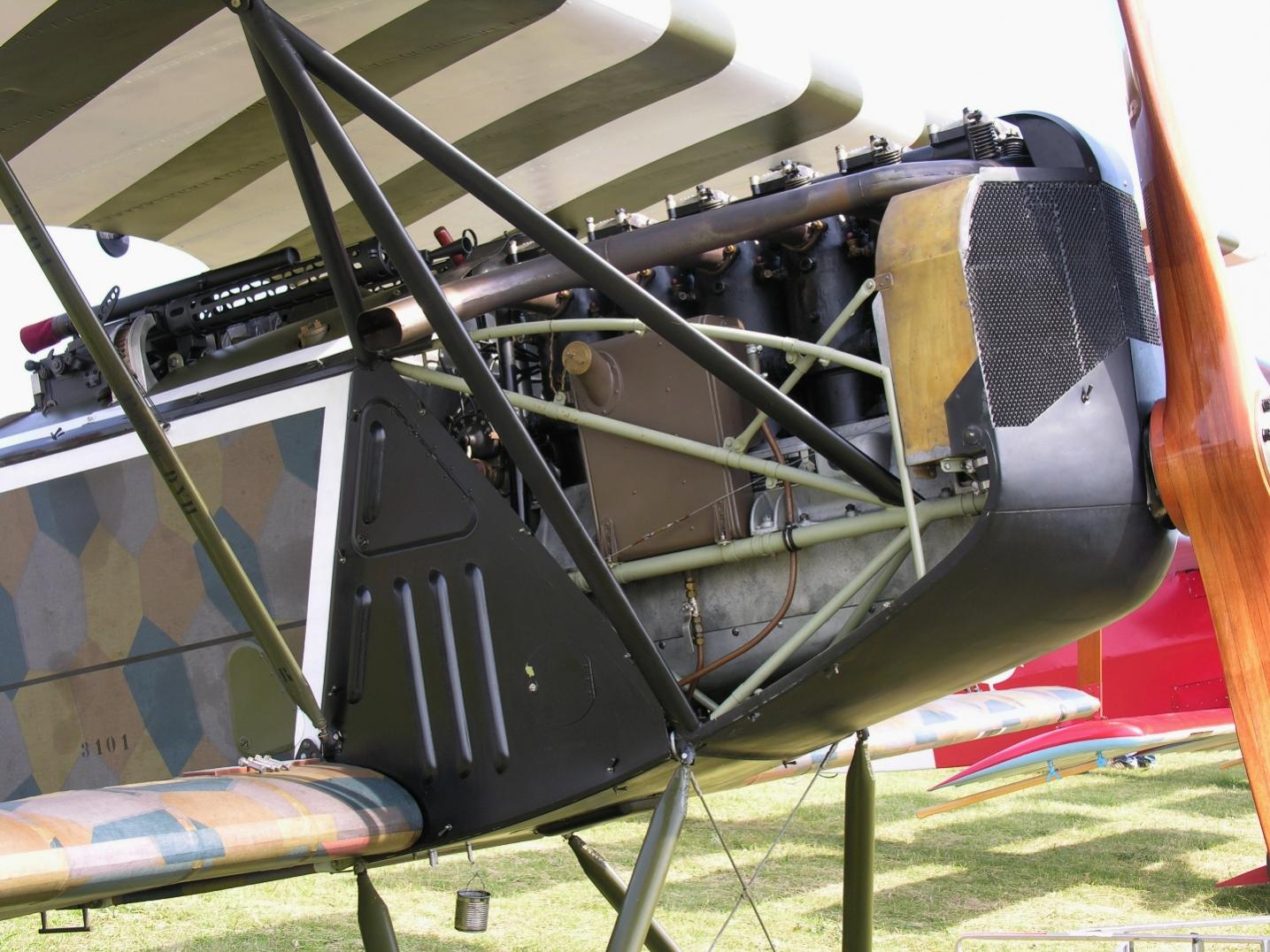 De Strutter heeft wel een originele motor. Hij is niet in de poeier gegaan, ik begrijp dat hij na de show nog een vlucht ondernomen heeft en daar net na de start met een motorstoring kampte, hij terug gedraaid is en een 'deadstick' landing heeft gemaakt, die goed verlopen is.