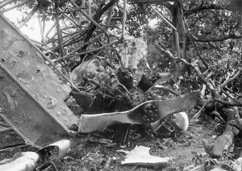 " Het wrak van de Fokker C-VIIW lichte zeeverkenner V-10 dat het boordvliegtuig was van de kanonneerboot Hr.Ms. Flores.