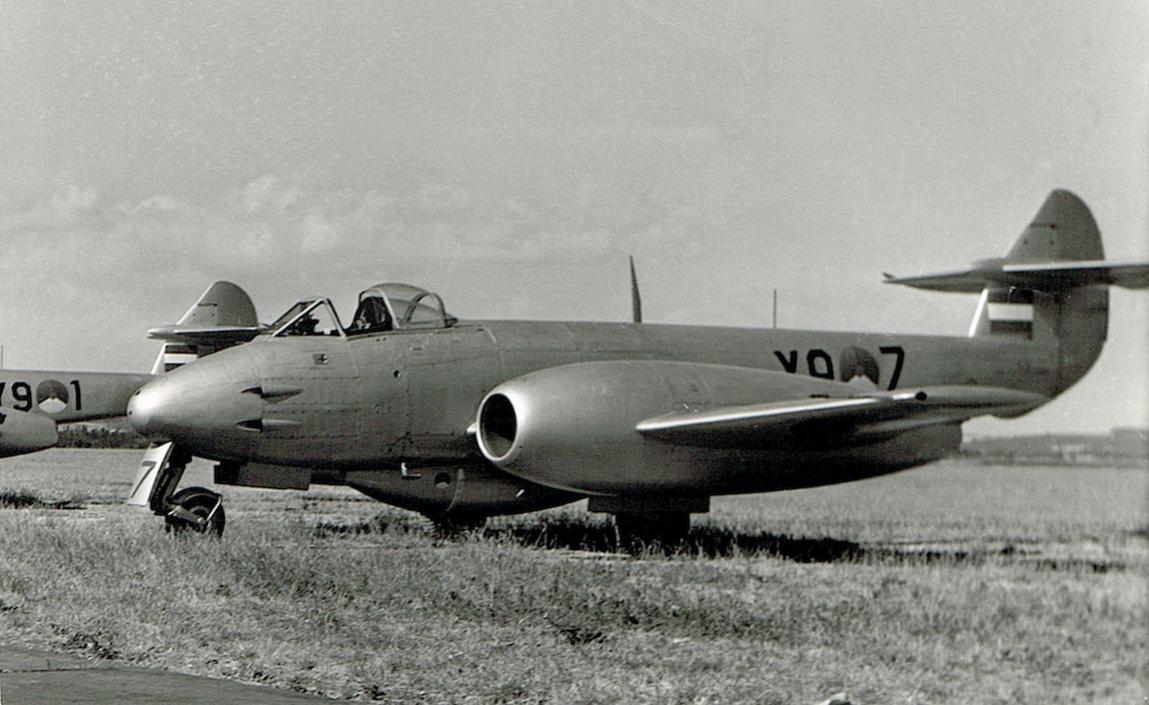 Hierbij een foto van een groep leerling vliegers in september 1949. Zover mij bekend zijn van deze groep 5 mensen met vliegtuigongelukken omgekomen of verongelukt. Gecrasht zijn o.a. Moeke (staand 2e van links) die met een Meteor tegen de mast van een vissersboot is aangevlogen, Luitjes of Luitjens (staand midden) met een Thunderjet en Pahud de Mortanges (uiterst rechts). Over de laatste heb ik gehoord, uit de derde hand, dat hij op Soesterberg is neergekomen. Uiterst links staat Roos (zoon van een piloot) die het overleefd heeft en waarvan mij verteld is, dat hij bij de televisie regisseur of producent is geworden. Ikzelf, met pijp, had asthma en werd tijdens de opleiding afgekeurd. (Misschien maar gelukkig). Mijn vraag is kent iemand van U de andere vliegers en weet U of ze het overleefd hebben. (De namen zijn me ontschoten) De omgekomenen zijn ongetwijfeld vermeld op het monument der gevallenen op Soesterberg. Ik heb een paar keer geprobeerd om er bij te komen. Dat lukte niet omdat het militair terrein was.Sinds het MLM geopend is, kan het wel.