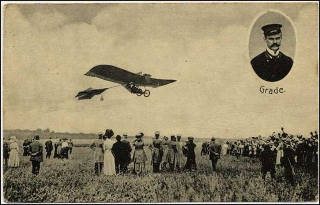 Hans Grade was een Duitse technicus die, in het begin van de vorige eeuw, het eerste echte Duitse vliegtuig bouwde en er mee vloog. De eerste vlucht was op 28 oktober 1908 op de Cracauer Anger bij Maagdenburg. Hij bereikte een hoogte van 8 meter. Het was eigenlijk maar een sprongetje. Het toestel was een driedekker: