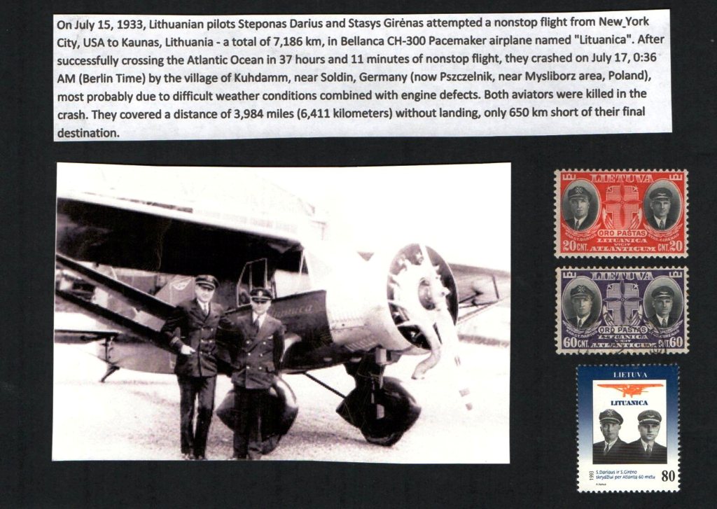Deze dappere vliegers wilden van de U.S. naar Litouwen vliegen in een Bellanca CH-300 Pacemaker, maar ze hebben hun doel Vilnius nooit gehaald. Hieronder het verhaal (in het Engels) zoals het is verwerkt in mijn verzameling: