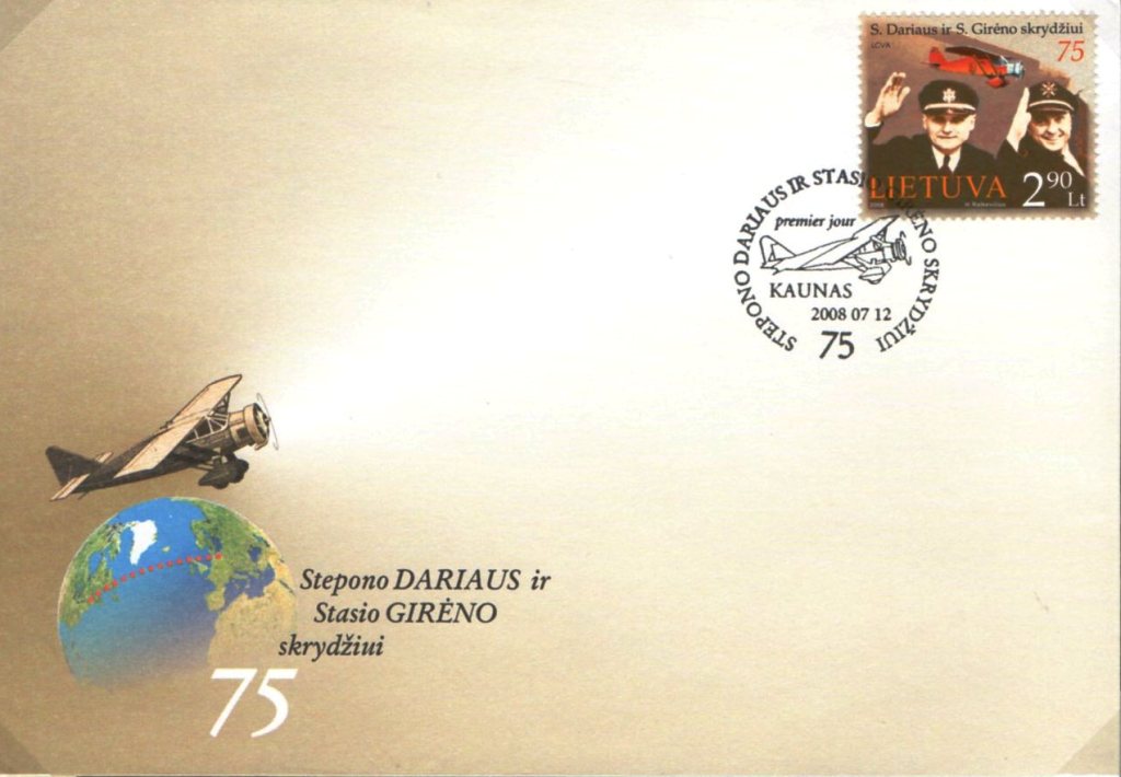 Op een van de Litouwse postzegels, die Bofors gisteren toonde ziet men 2 zwaaiende mannen en wel de piloten Stepono Dariaus en Stasio Giréno (of Girénas). Deze postzegel komt ook voor op onderstaande envelop: