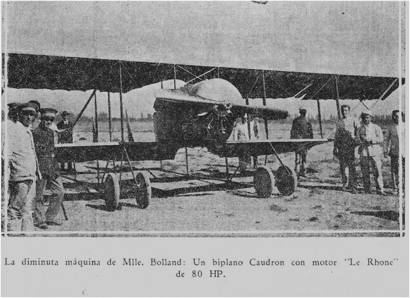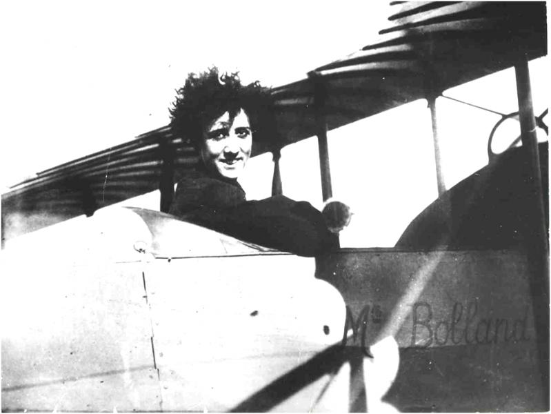 het Frans natuurlijk): ’Niemand kan mij van gedachten doen veranderen. Ik geef nooit op’. Ze was in 1895 als Adrienne Boland geboren, maar door een fout in de administratie werd het Bolland. Zij leerde vliegen bij René Caudron. Haar instructeurs vonden haar een lastpak maar apprecieerden haar vliegaanleg. Zij kwam in dienst bij Caudron in 1920. In augustus van dat jaar was zij de tweede vrouw die het kanaal overstak in en vliegtuig.
