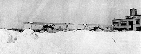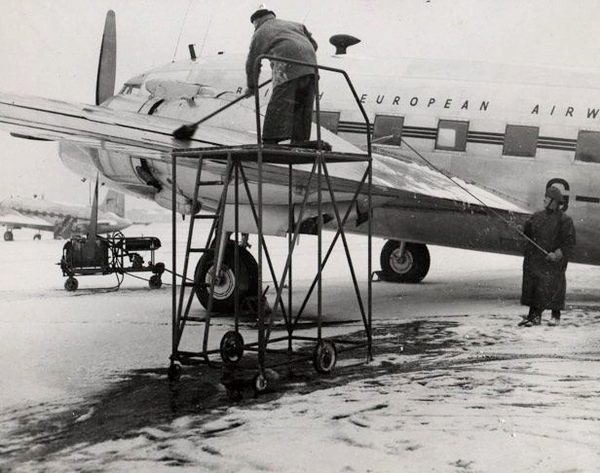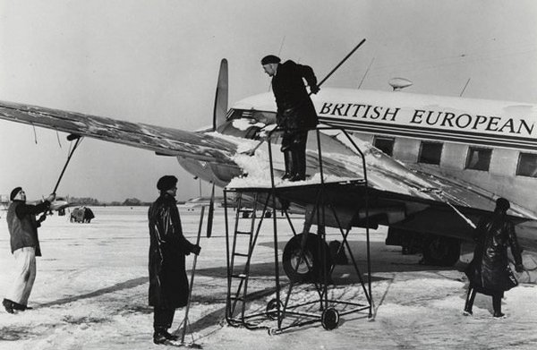 Het vliegkamp organiseerde een sneeuw- en ijsruimploeg en men toog aan het werk. Sneeuwschuivers en doodgewone scheppen, met hier en daar een houweel; de latere hete lucht apparatuur was er nog niet.