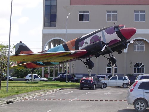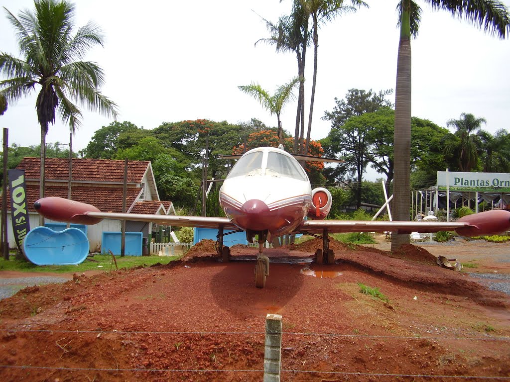 Learjet 23 als blikvanger bij een wegrestaurant in Taguatinga.